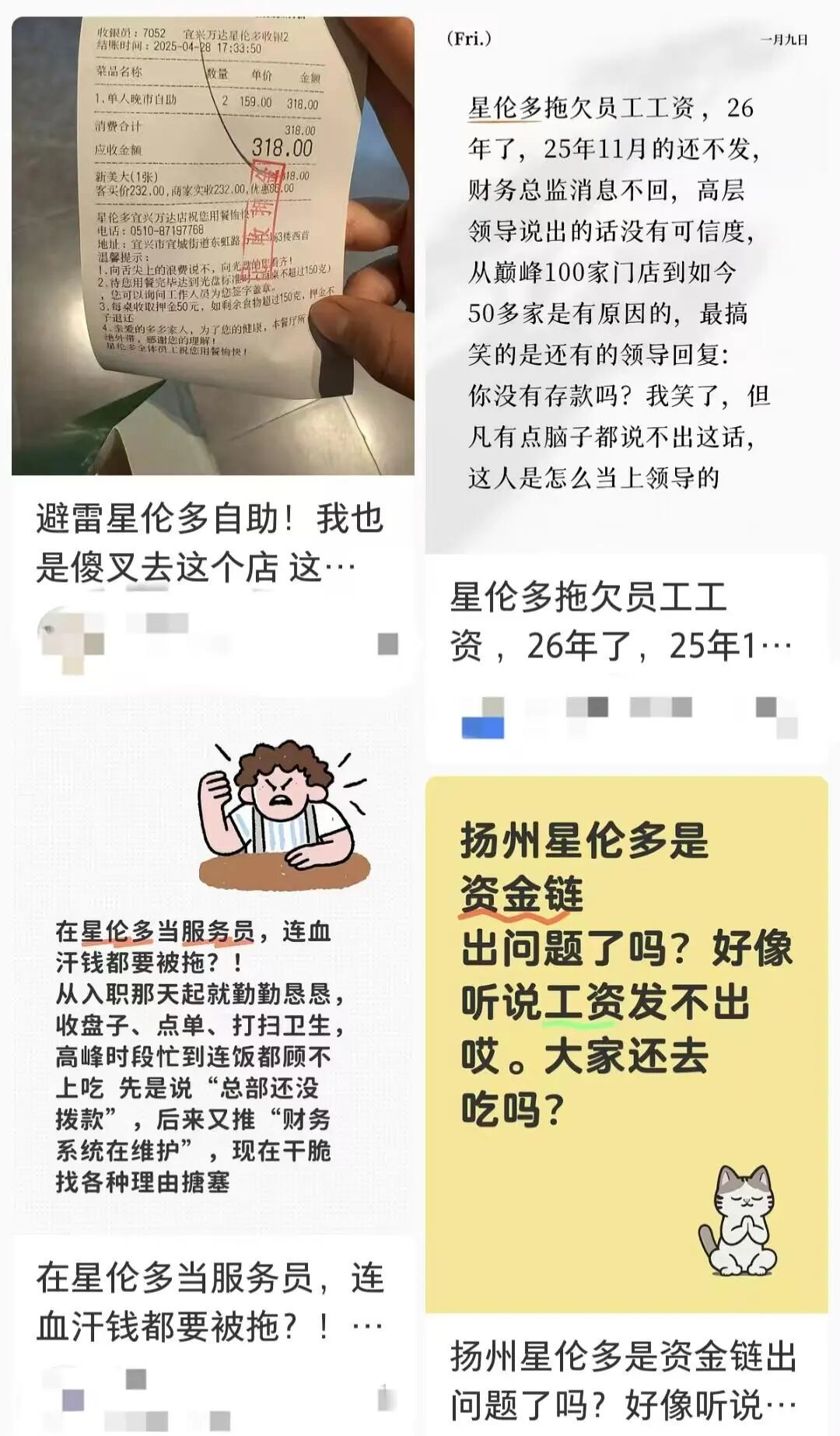 在酬酢平台上,有多位星伦多前职工爆料称公司薪资拖欠严重,部分职工数月未收到薪资,甚而有门店因为拖欠工资,胜仗导致职工歇工,门店住手运营。