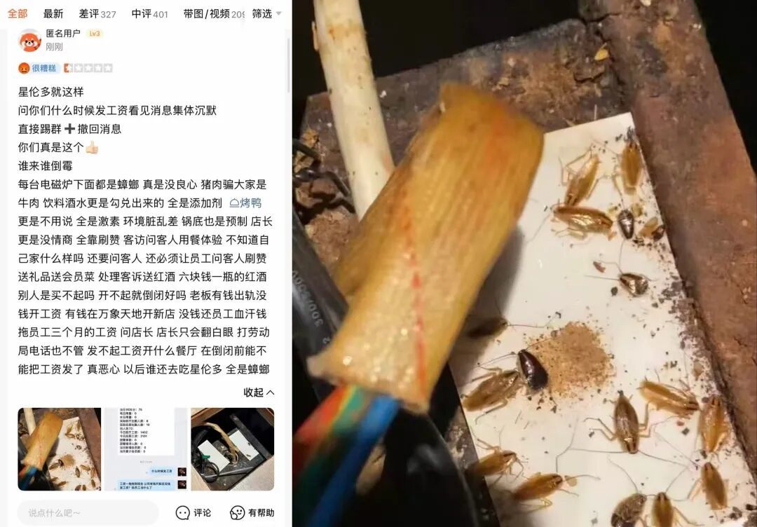 有蹧跶者反应电磁炉底下齐是蟑螂,环境清扫不到位,更暗意店长只会一味让职工刷赞耸立,省略细顾主的真确业绩体验。