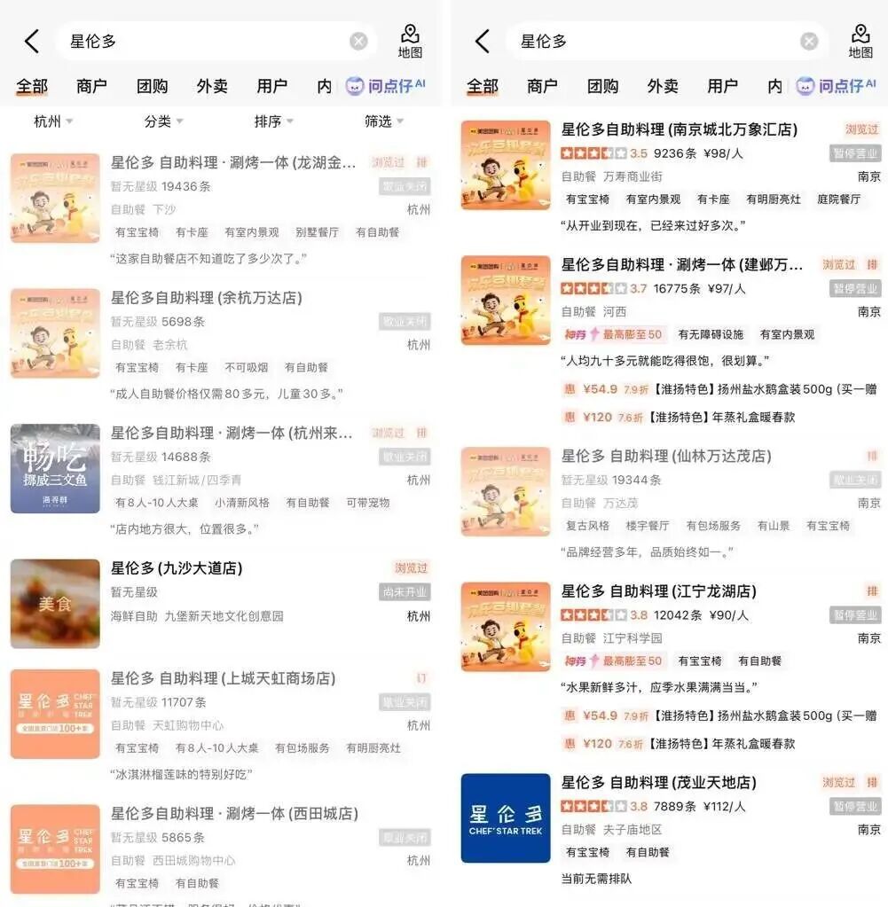 在大家点评搜“星伦多”,寰宇各地的城市,比如南京、上海、苏州、杭州等地,多个门店齐依然关深入关闭了。